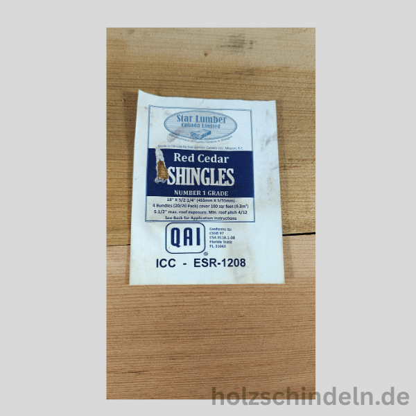 Rot-Zederschindeln, gesägt, stumpf, ca. 45 cm lang, verschieden breit (8-25 cm), 1. Qual. (bluelabel), Herstellung nach kan. Norm CSSB-97, UBS 15-3, CSA 0118.7-97