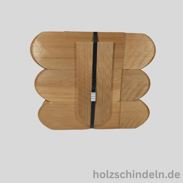 Holzschindeln sind ein Naturprodukt – trocken lagern und vor anhaltender Feuchtigkeit schützen. Beim Bearbeiten bitte geeignete Schutzkleidung tragen. Entsorgung gemäß den örtlichen Vorschriften.